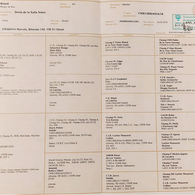 Er ist ohne Auflagen voll zur Zucht zugelassen und steht entsprechenden Briard Hündinnen als Deckrüde zur Verfügung.